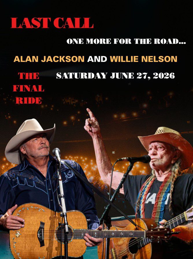 On June 27, 2026, Nashville’s Nissan Stadium will host an unprecedented country music event that promises to define an era. Alan Jackson, one of country music’s most iconic voices, will take the stage for his final concert, aptly titled Last Call: One More for the Road – The Finale. This historic evening will be elevated further by the presence of Willie Nelson, whose legendary career spans decades alongside Jackson’s. Together, these two titans of country music will deliver a performance that fans and critics alike will remember for generations.