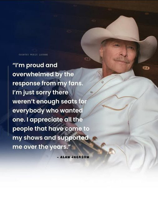 Few moments in country music history carry the weight and emotion of a farewell from a legend. Alan Jackson, one of the most beloved figures in American country music, has announced what will be the final performance of his touring career, and fans responded with overwhelming passion. Within hours, every ticket to “Alan Jackson’s Last Call: One More for the Road – The Finale” was gone, marking a historic sellout that underscores his enduring influence and legacy.