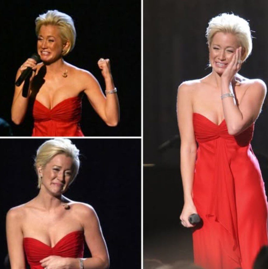 On the night of the 2007 CMA Awards, Kellie Pickler stepped onto the stage with a radiant smile that captivated the audience immediately. Her appearance, clad in a shimmering red gown that reflected both confidence and poise, seemed to promise a joyful performance. Yet, beneath that smile lay a torrent of emotion, a deeply personal story that few could anticipate. The audience was unaware that they were about to witness a performance that would leave them in tears and redefine Pickler’s image from a bright “American Idol” personality to an artist of profound vulnerability.