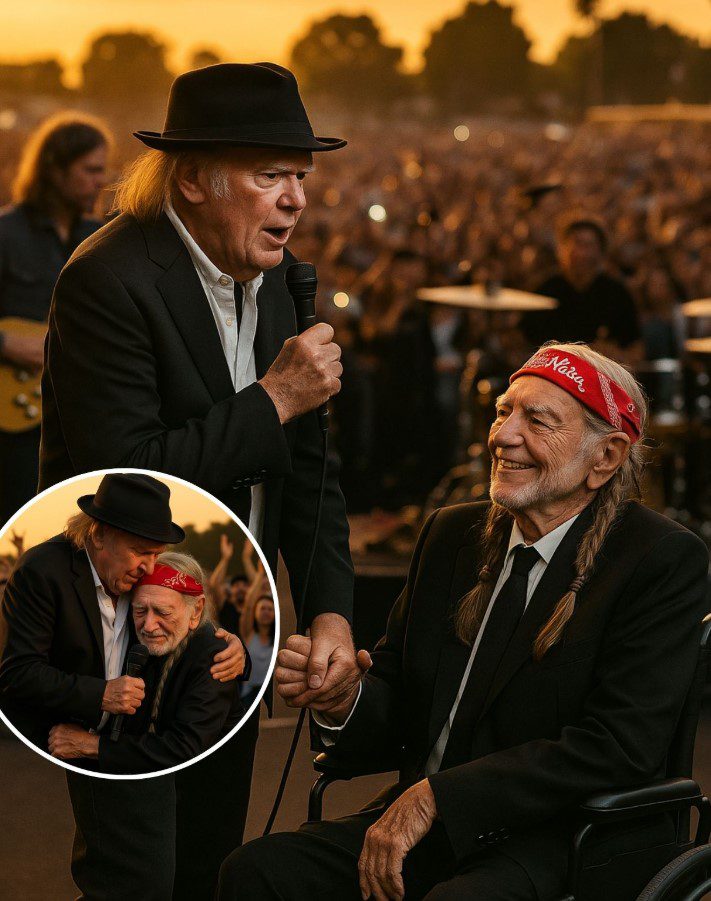 As the final chords faded into the twilight, it became clear that the evening was more than a concert—it was a once-in-a-lifetime experience. The golden sunset framed a union of two legendary voices, leaving an imprint on the hearts of all who witnessed it. It was a celebration of friendship, legacy, and the transformative power of music, a night that will be remembered for generations as a testament to what happens when true legends come together. This unforgettable collaboration between Neil Young and Willie Nelson stands as a timeless tribute to the enduring beauty of music, the power of authentic expression, and the bond that forms when artistry meets soul.